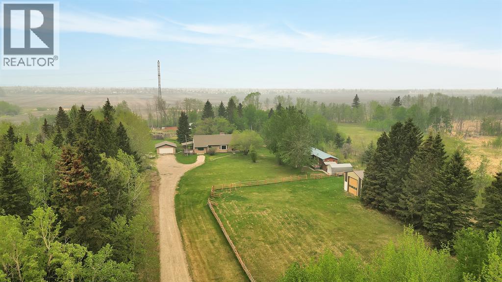 Fabulous opportunity with recent renovation upgrades! Invest in your future and enjoy complete privacy on this 80-acre parcel, located within Red Deer’s intermunicipal district along its eastern boundary. This property offers a wonderful rural lifestyle, a solid investment hold, dual-residence living, and multiple streams of farming income, including livestock, equestrian, solar, tree farming, market gardening, and grain. With its proximity to the city, this is a unique opportunity where your living investment is sure to appreciate over time.The property features a 2-storey main house (built in 1974), a mobile home (1991), a 24'x24' detached garage (1976), a 40'x26' insulated shop with cement flooring, a 50'x24' cold storage pole-style shop (1998), and numerous other outbuildings. The land is level, with approximately 32 acres of arable farmland featuring excellent soil quality, expansive pastures, low-lying areas, treed and brush sections, and a beautiful tree-lined driveway that leads from paved Range Road 270 to the yard site.The main home offers a functional layout with a main floor master bedroom, two living areas (one with a wood-burning fireplace), a kitchen complete with an indoor barbecue, and a renovated 2-piece bath. The expansive bonus room addition features a gas fireplace, patio doors to the south-facing deck, and a bar area perfect for entertaining. Upstairs, you'll find a roomy bedroom with a Juliette balcony, a 4-piece bathroom, and an adjoining space with two additional sleeping areas. The lower level is wide open and offers ample storage, a utility area, and Laundry. The well-maintained mobile home includes 2 bedrooms, 1 bathroom, upgraded vinyl windows (2007), a south-facing covered deck, and a parking shelter.Renovation highlights include new windows for both the house and mobile home (2007), a fully renovated main floor 2-piece bath, and a complete second floor renovation with new doors, trim, and paint. Also a complete bathroom reno i ncluding shower, flooring, vanity, and paint. Additional upgrades include shingles and siding on the house (2011) and a replacement of the septic tank (1992).Zoned A1 Future Urban Development District, this property allows for agricultural and related uses until the land is needed for urban development. This property is a rare combination of lifestyle, investment, income potential, and privacy—an opportunity that rarely comes along! (id:56270)